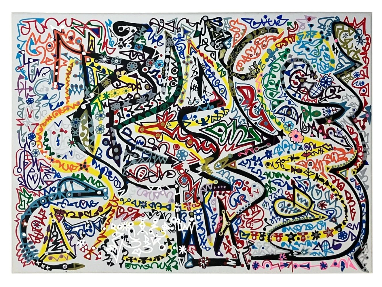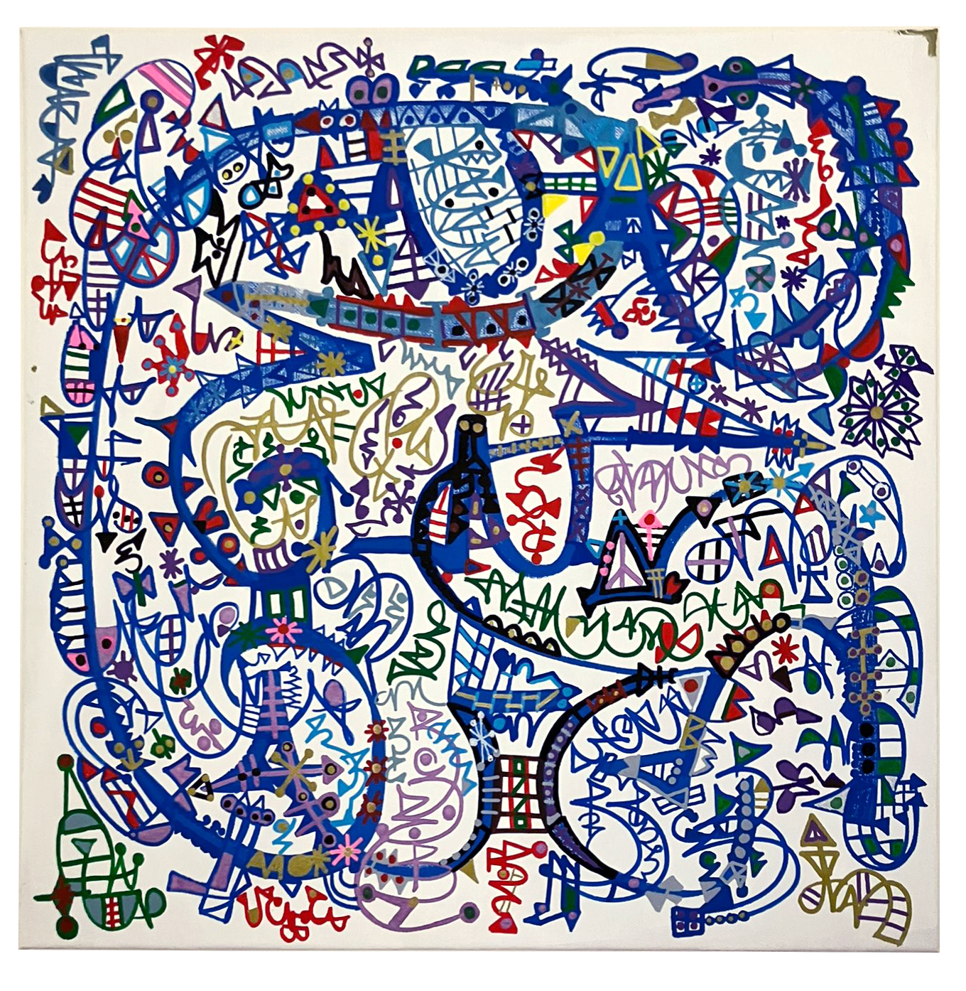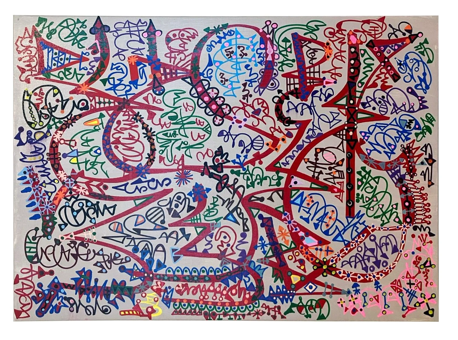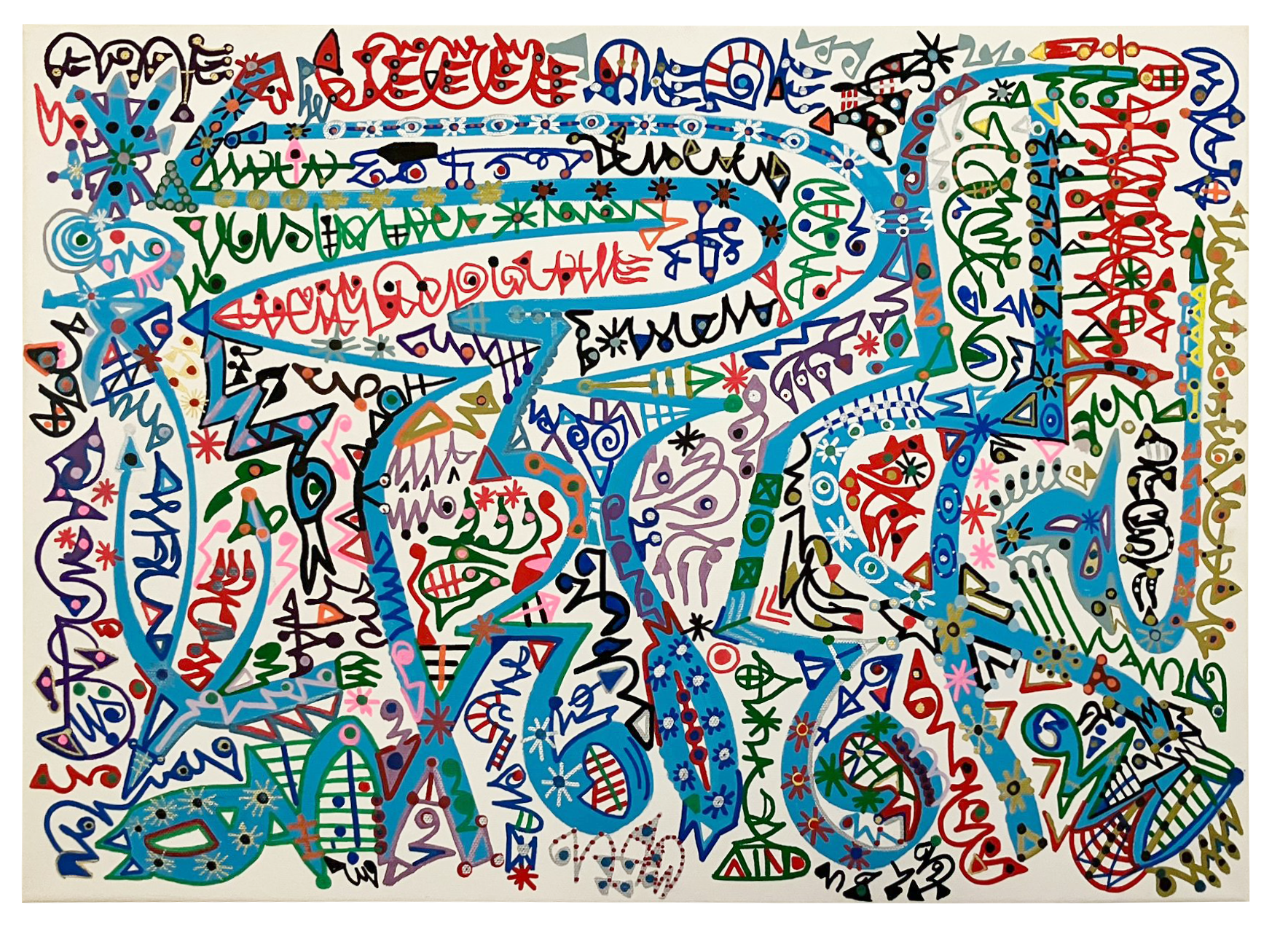 She chooses not to write full words, but focuses on letters then shapes inspired by Moroccan colours and Arabesque shapes.