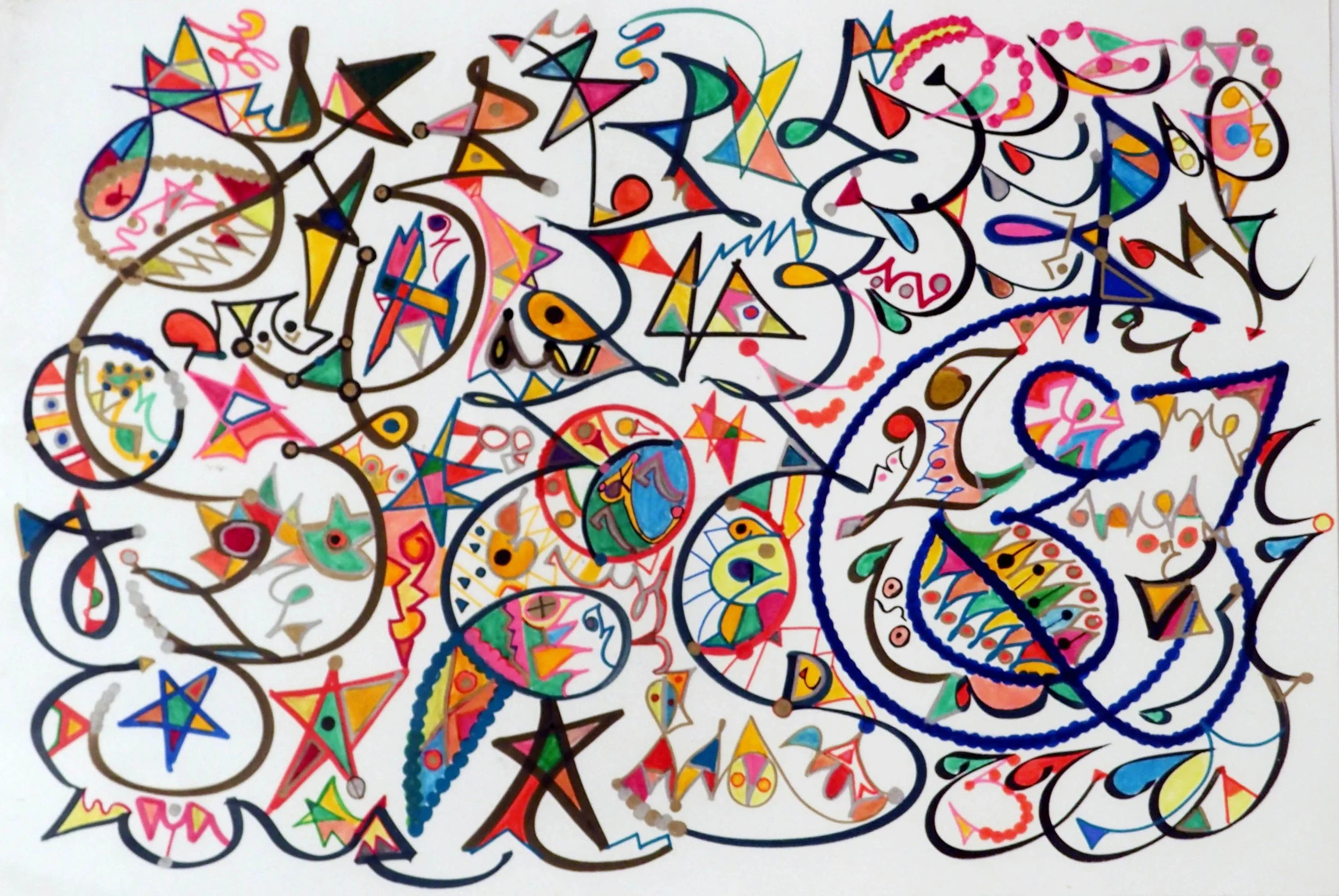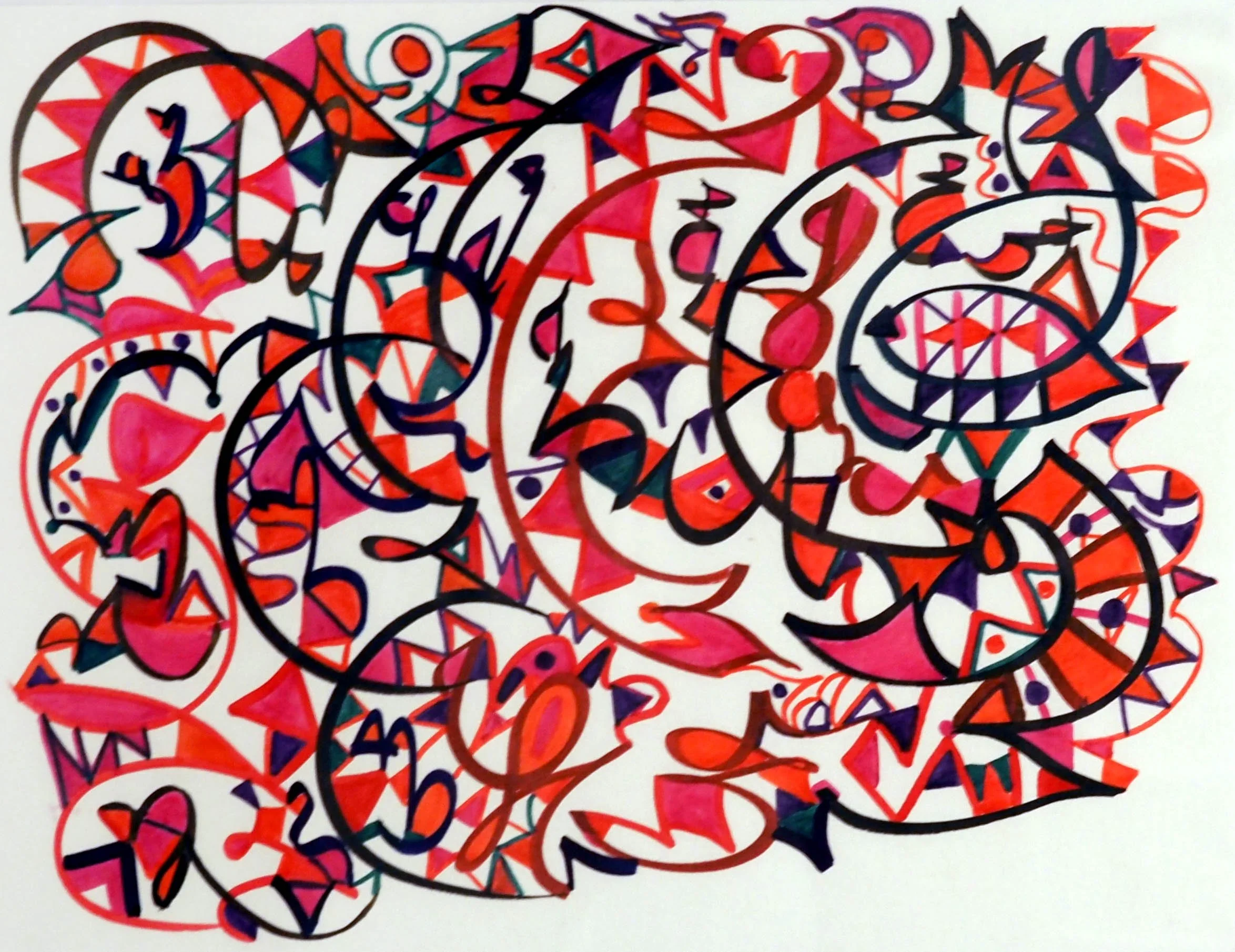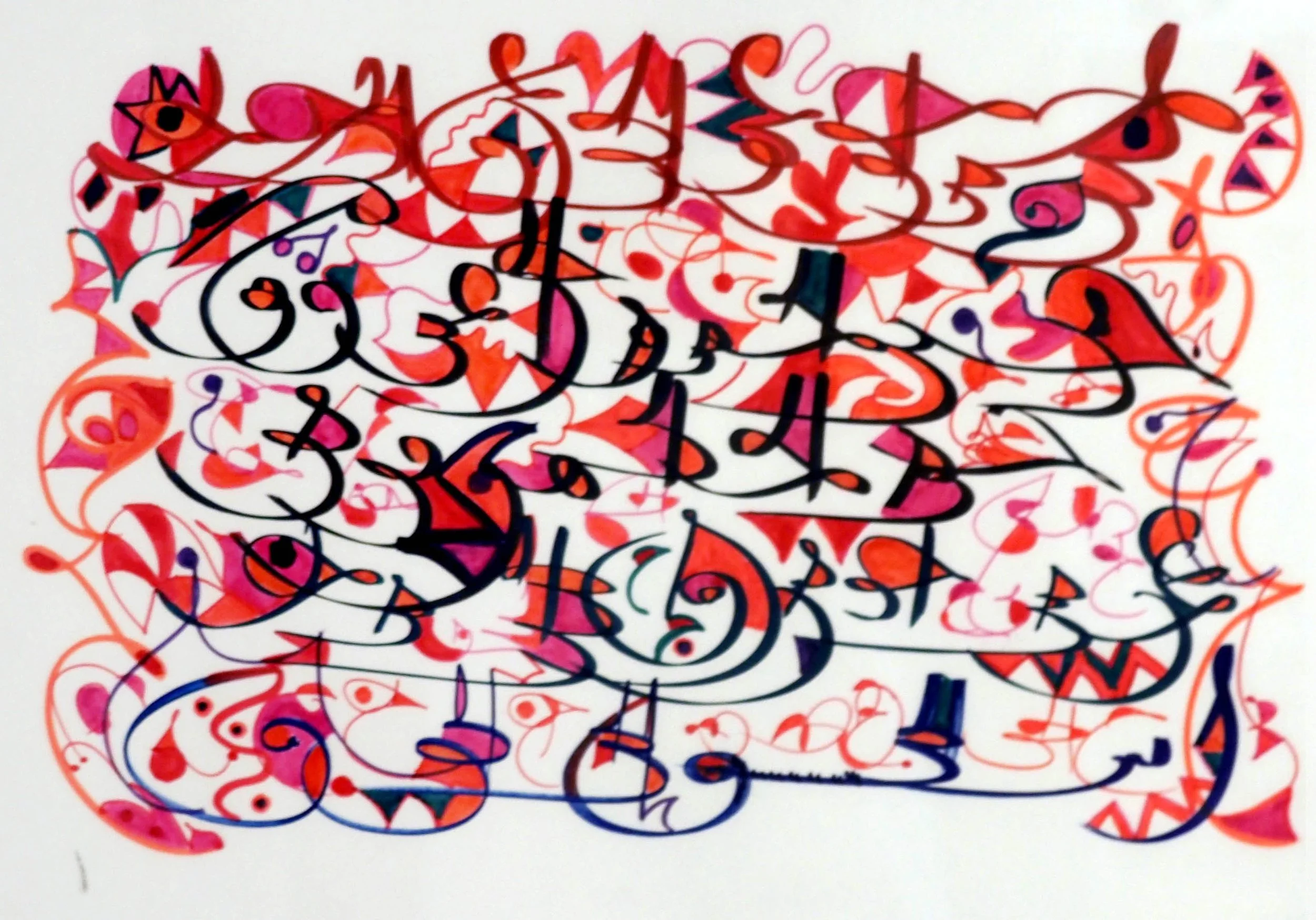 Mina Znaidi is a calligraphy artist who uses Arabic lettering as a basis for her drawings.